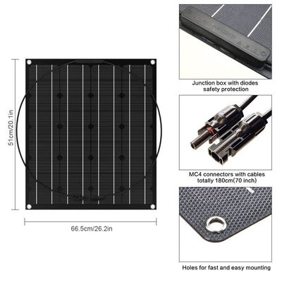 Panneau solaire en fibre noire ETFE Surface 50w Pour le ventilateur de grenier Bouée flottante Mast sur yacht RV Camping Voyage hors route